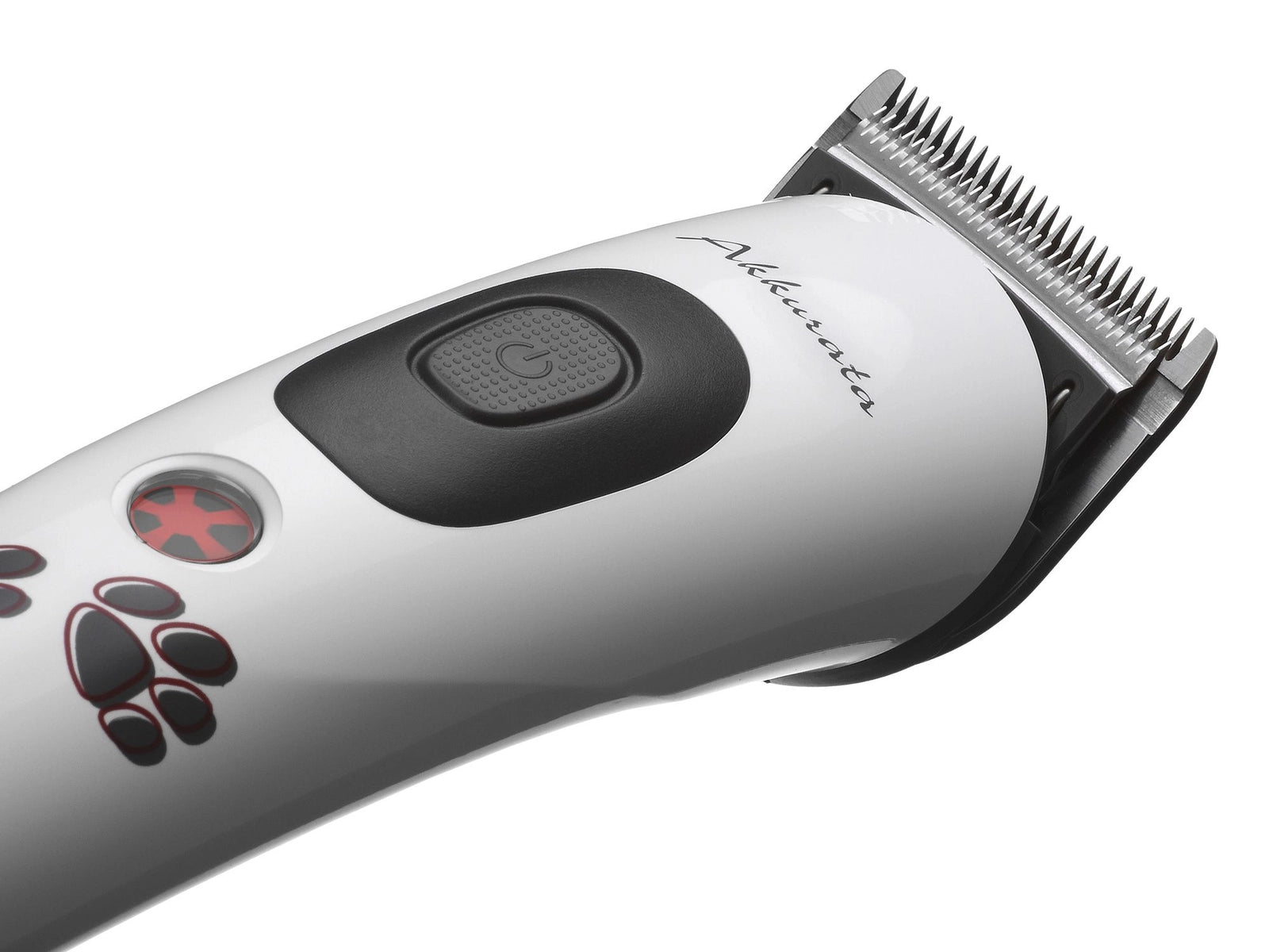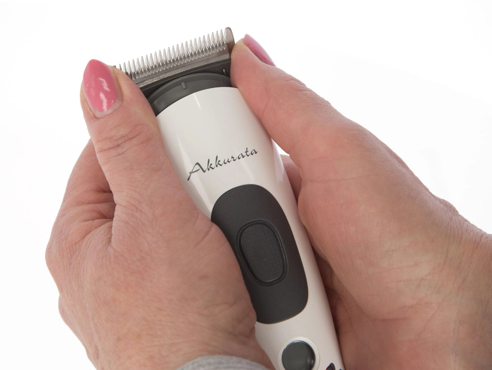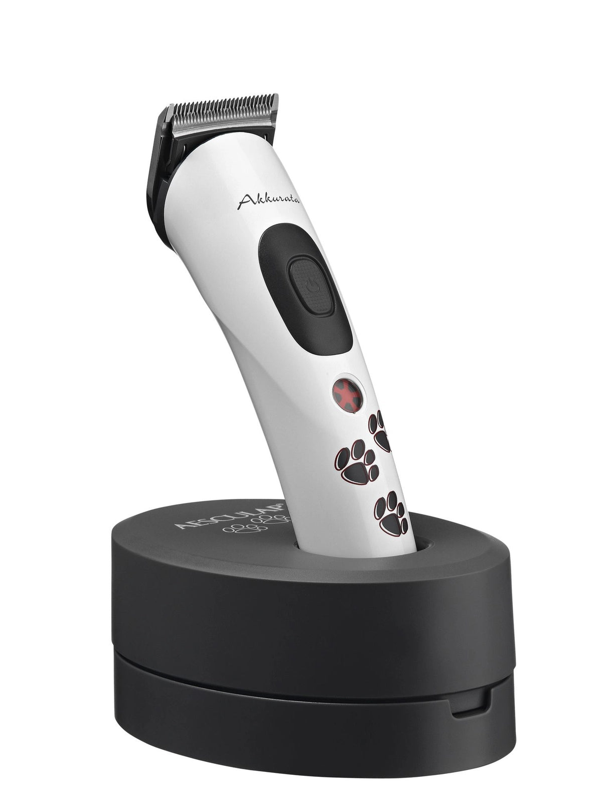 Profesjonalna maszynka do strzyżenia zwierząt znanej na całym świecie firmy Aesculap model Akkurata, cicha i silna, a do tego z regulowanym ostrzem. W zestawie z akumulatorem Lithium-Ion pozwalającym na 100 minut ciągłej pracy. Czas pełnego naładowania akumulatora 60 minut. W stacji ładującej umieszczona jest specjalna szuflada pozwalająca na przechowywanie nasadek.