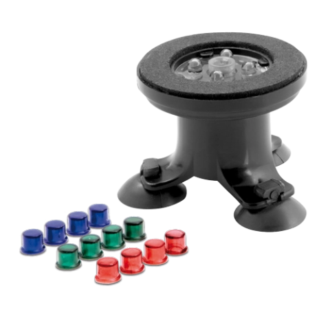 Jeśli chcesz osiągnąć ciekawy efekt świetlny, to nałóż dołączone nakładki, a wylatujące z urządzenia bąbelki uzyskają intensywną barwę w kolorze niebieskim, zielonym lub czerwonym.